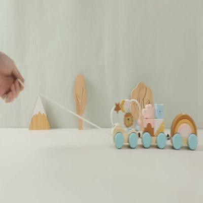 Train en bois d’éveil Montessori – Jouet à tirer & blocs empilables